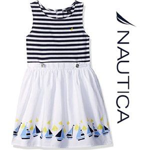 Nautica Toddler Girls' Striped Dress with Printed Poplin Skirt