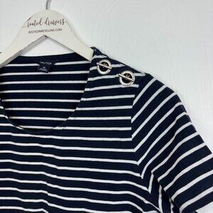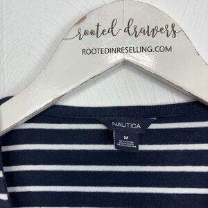 Nautica Striped T-Shirt Navy Blue White Short Sleeve Pullover Casual Grommets M