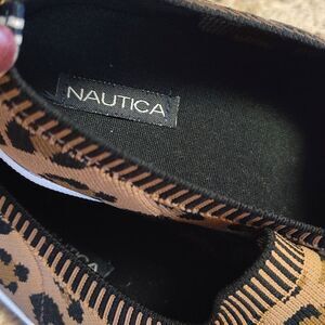 Nautica Sunchaser Brown Black Leopard Print Canvas Slip On Sneakers Size 7.5