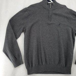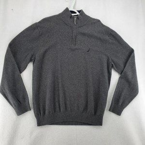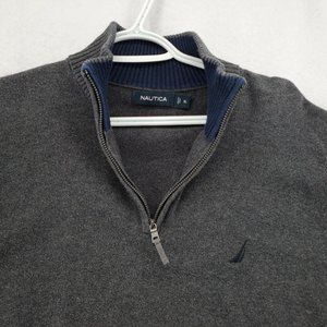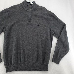 Nautica Sweater Men's 1/4 Zip Long Sleeve High Neck Pullover Sailboat Gray XL