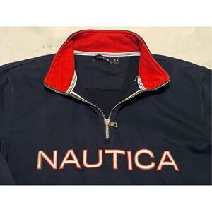 Nautica Sweater Mens Extra Large 1/4 Zip Pullover Sweatshirt Spellout