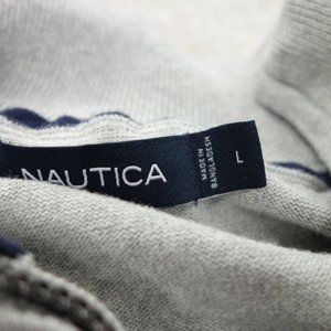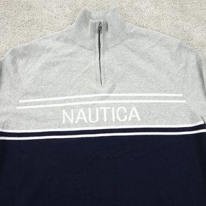 Nautica Sweater Mens Large Gray Blue Cotton Long Sleeve 1/4 Zip Mock Neck