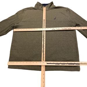 Nautica Sweater Men's Large Green Cotton Long Sleeve Logo Quarter Zip Pullover