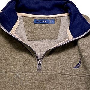 Nautica Sweater Men's Large Green Cotton Long Sleeve Logo Quarter Zip Pullover.