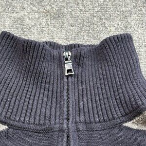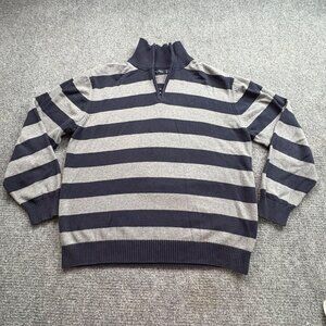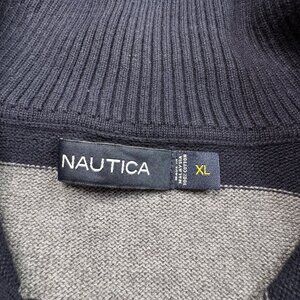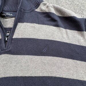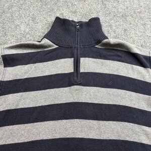 Nautica Sweater Men’s XL Gray Navy Striped 1/4 Zip Preppy Jumper Cotton Logo
