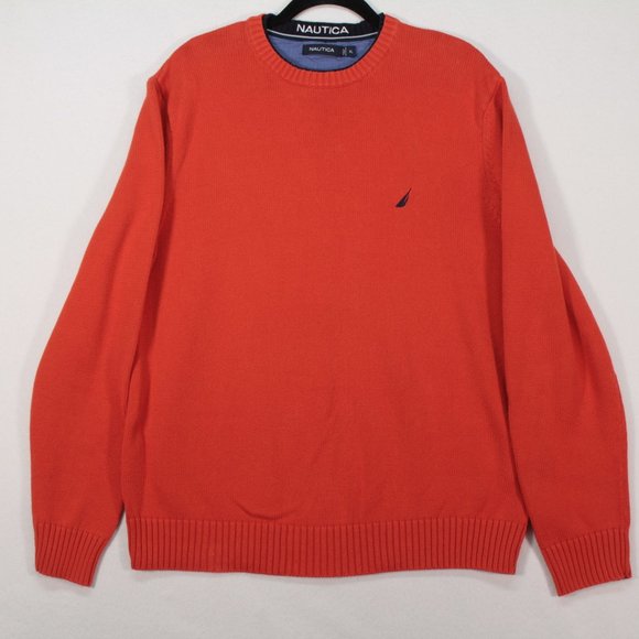 Nautica Sweater Men's XL Red Orange Long Sleeve Solid Pullover