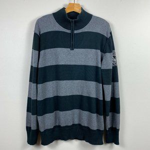 Nautica Sweater Mens XXL 1/4 Zip Pullover Striped Knit Long Sleeve Patch Cotton