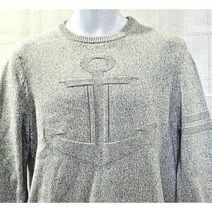 Nautica Sweater Pullover Crewneck Gray Raised Logo Mens Size S