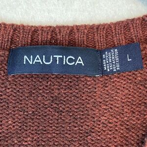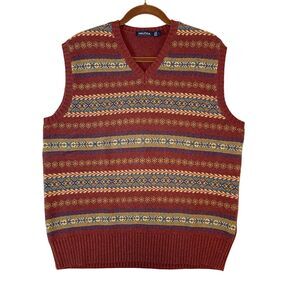 Nautica Sweater Vest Men's Large Red Wool Blend Striped Grandpa Grunge Retro