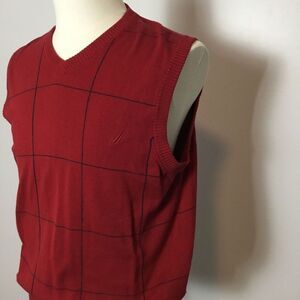 Nautica Sweater Vest Red Check Mens M Preppy Academia Timeless