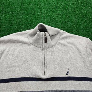 Nautica Sweatshirt Mens 2XL Gray Striped 1/4 Zip Long Sleeve Pullover NavTech
