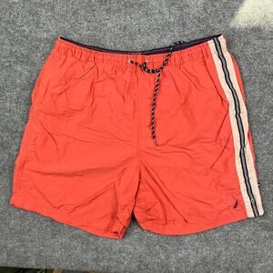 Nautica Swim Trunks Mens Size XXL Red Nylon Mesh Lined Drawstring Retro Shorts