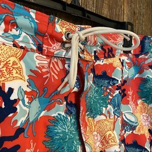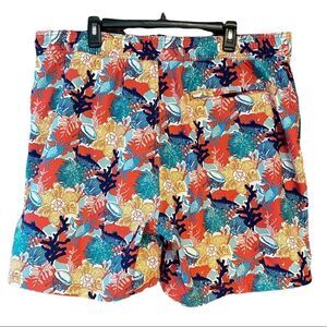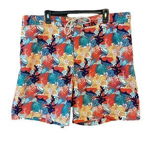Nautica Sz 2XL Orange Blue Coral Crab Ocean Design Surfing Swim Board Shorts