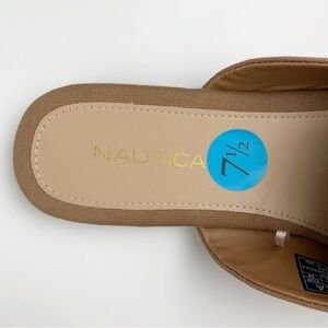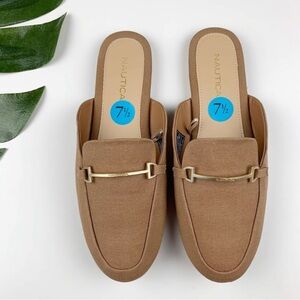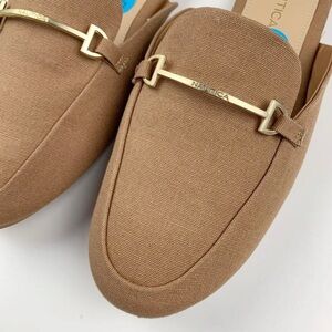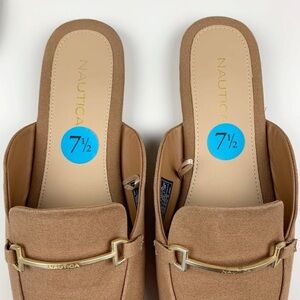 Stylish tan loafers by Nautica. Features a sleek gold accent. Perfect for casual wear.