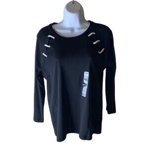 Nautica Top Women's Size Small Striped Ribbon Long Sleeve Stretch 100% Cotton