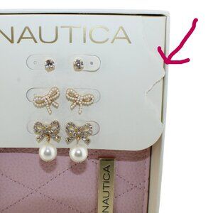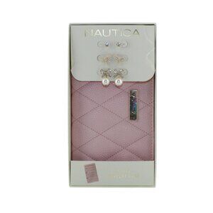 Nautica Travel Jewelry Case Gift Set with 3 Earrings Pink Organizer Box