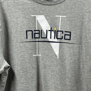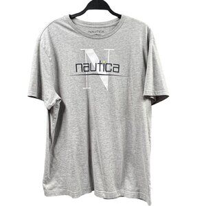 Nautica T-shirt Mens XL Gray Graphic Crew Neck Casual Spellout Logo Pullover Top