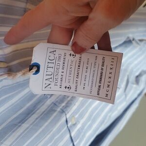 Nautica Twilt Mist Classic Fit Blue White Striped Casual Button Sz. XL Shirt NWT