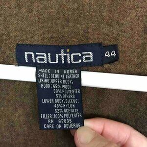 Nautica Mens Utility Jacket Coat Parka Brown Flap Pockets Lined Hooded Genuine Leather 44