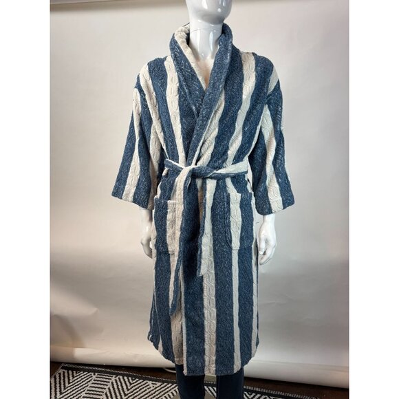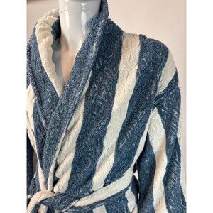 Nautica Vintage 80s Blue & White Striped 100% Cotton Robe One Size Made In Turke