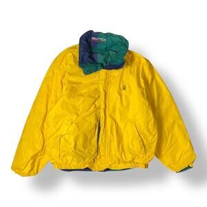 Nautica Vintage 90s Men’s Reversible Hooded Color block Jacket Size L Streetwear