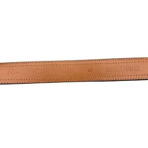 Elevate your style with this handsome Nautica vintage belt! Crafted from rich brown leather, it features the iconic blue flag logo for a touch of classic nautical flair. Perfect for adding a sophisticated touch to your casual outfits.