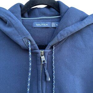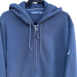 Nautica Vintage Mens Navy Full-Zip Fleece Embroidered Logo Hoodie Sweatshirt XL