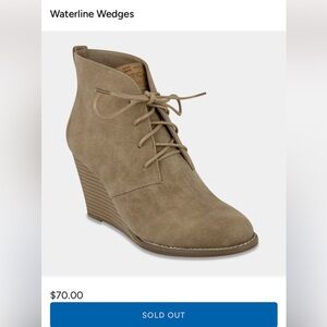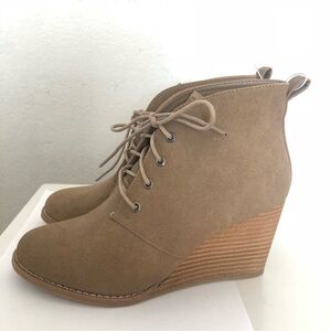 Nautica Waterline Wedge booties. Tie closure, tan coloring, and wedge heel. Size 7.5.