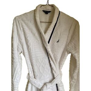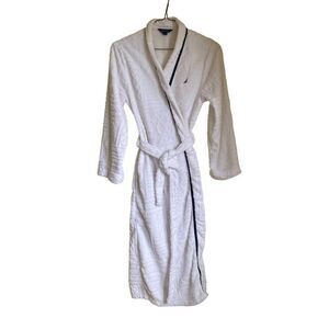 Nautica Womans Bath Robe Wrap Terrycloth Fuzzy White Size S/M