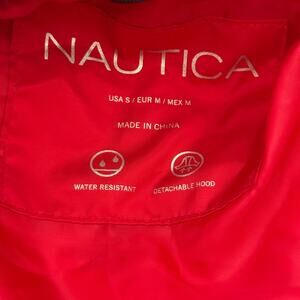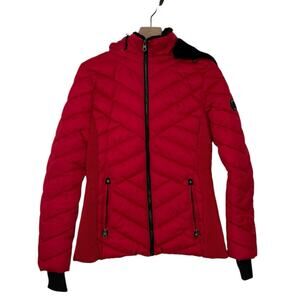 Nautica Woman's Size Small Red Hooded Faux Fur Trim Full Zip Puffer Jacket