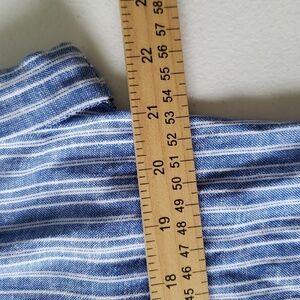 Nautica Women Linen Blend Top XS Blue White Stripes Short Sleeve Button Down