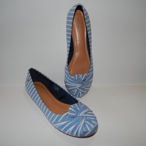 Nautica Women's 10 Blue & White Stripe Fabric Shoes VNGUC