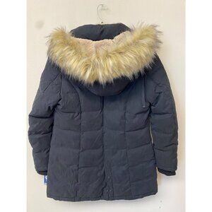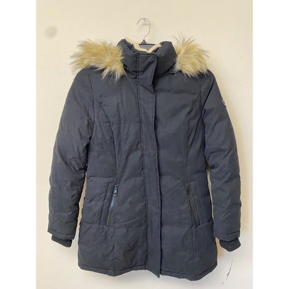 Nautica Women's Black Faux Fur Trim Hooded Puffer Coat Size M Defected (RIPPED)