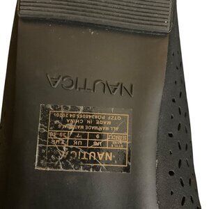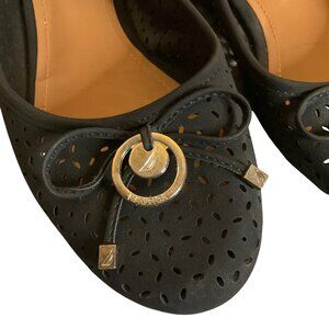 Nautica Womens Black Perforated Slip-On Flats With Bow & Gold Detail Sz 9 Classi