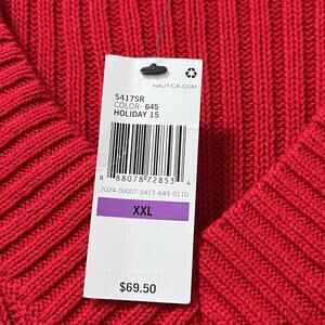 Nautica Womens Cable Knit V Neck Sweater Size XXL Red Thick Fisherman Preppy NWT