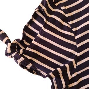 Nautica Womens Cold Shoulder Blouse Stripes Top Scoop Neck Blue White Large