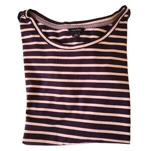 Nautica Womens Cold Shoulder Blouse Stripes Top Scoop Neck Purple White Large
