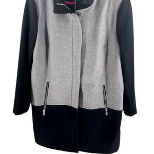 Nautica Women’s Color Block Black & Gray Wool Blend Longline Coat size 12