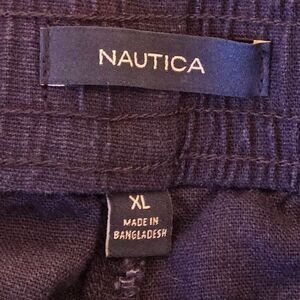 Nautica Womens Elastic Waistband Linen Blend Drawstring Shorts Navy Blue Size XL