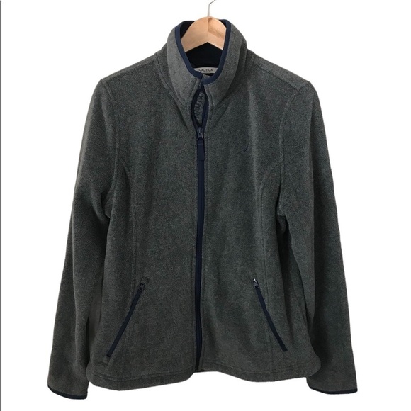 Nautica Women’s Gray /Blue Trim Fleece Jacket. Two front zipper closure pockets. Zipper front closure.