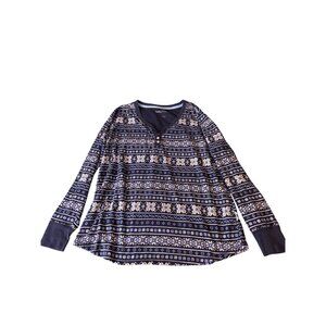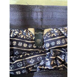 Nautica Womens L Pajama Set Navy White Winter Button Henley Top Drawstring Pants