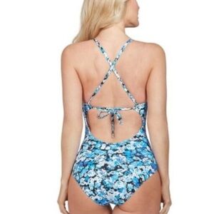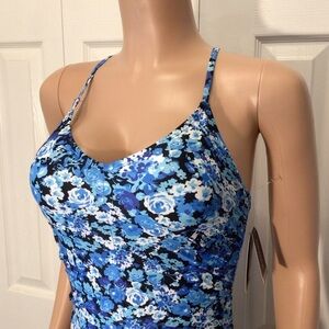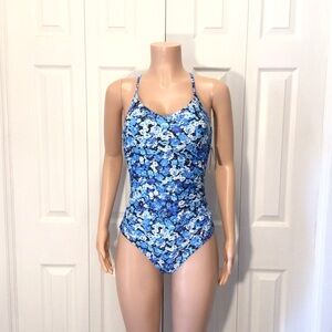 Nautica Womens Marina Blue Floral Shirred One Piece Swimsuit Size Medium. New with tags. From smoke free home.