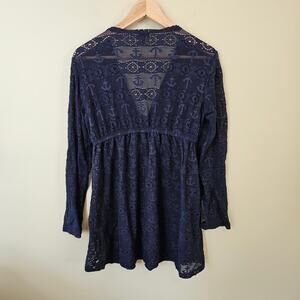 Nautica women's navy blue long sleeve cover-up, size medium. Perfect to wear over your swimsuit at the pool or beach!