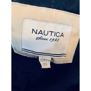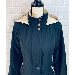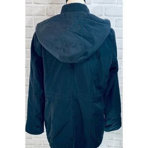 Nautica Womens Navy Khaki Hooded Wind Parka Zipper Button Jacket Size Medium