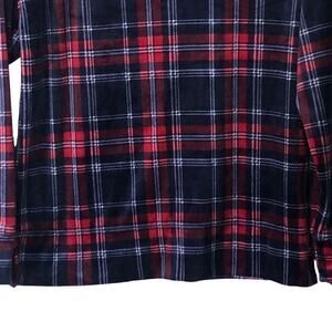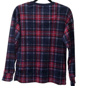 Keywords: Nautica plaid pajama top, women's extra small sleepwear, red navy checkered pajama top, cozy winter sleepwear, soft polyester blend pajamas, classic plaid sleep shirt, comfy lounge wear, preppy nightwear top, warm flannel pajamas, casual homewear