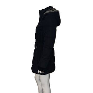 Nautica Womens Puffer Jacket Removable Hood Faux Fur Lining Black Small NWT