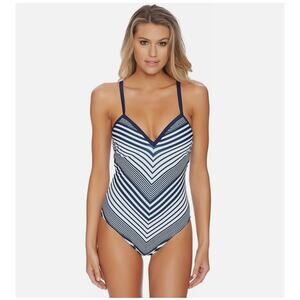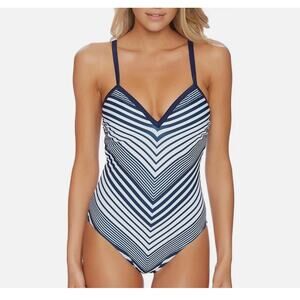Nautica Women's Seabrook Stripe Soft Cup Spliced One Piece Swimsuit
