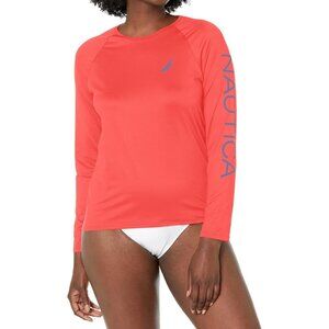 Nautica Womens Size XL Red Rashguard Swim Surf Quick Dry UPF Protection NEW