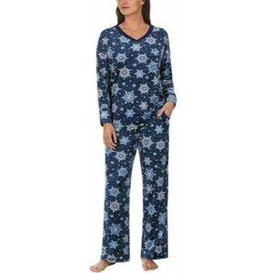 Nautica Womens Snowflake Pajama Set L V-Neck Winter Print