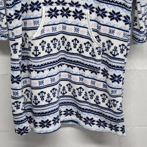 Nautica Womens Sweater Dress Hoodie Size Medium Fleece Anchor Print 3/4 Sleeve